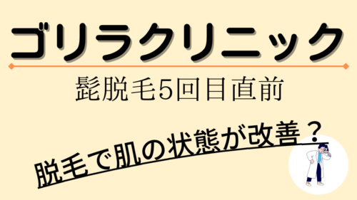 脱毛 【髭脱毛5回目】もう痛くない?|ゴリラクリニック 6回コースも終盤になりました。量が半分以下になると、痛みは感じなくなる?脱毛の経過が見られるリンクもあるので、必見です。 2022.05.21 脱毛髭