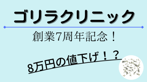 脱毛 【ゴリラクリニック】8万円オフの施術があります! 開院7周年記念で、いくつかキャンペーンを行ってきたゴリラクリニックが、第3弾として一部の施術で8万円の値下げをしました。他と比べると比較的高いので、これは大きなチャンスです。10%オフが併用できる場合もあるので必見です。 2022.05.07 脱毛