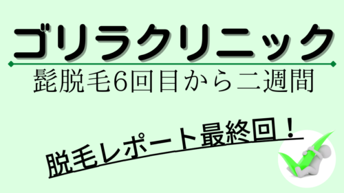 脱毛 【髭脱毛6回目直前】コース契約だけで終わる?|ゴリラクリニック いよいよ最後の照射目前です。残り一回の照射で完全にゼロにすることが出来るのか。写真で比較して、これまでの効果をチェックしましょう。 2022.07.09 脱毛髭