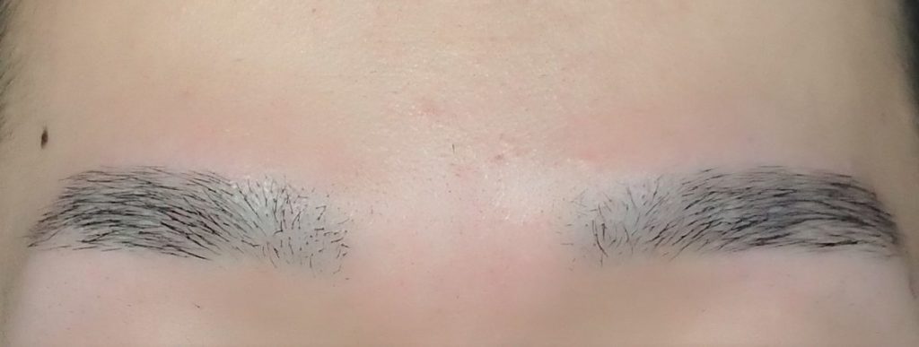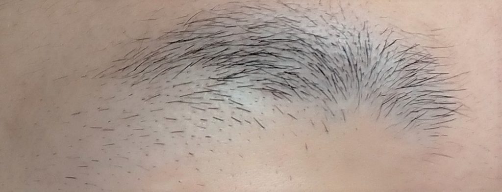 眉尻の下側(写真左下側)に短い毛が残っているので、少し残念です。